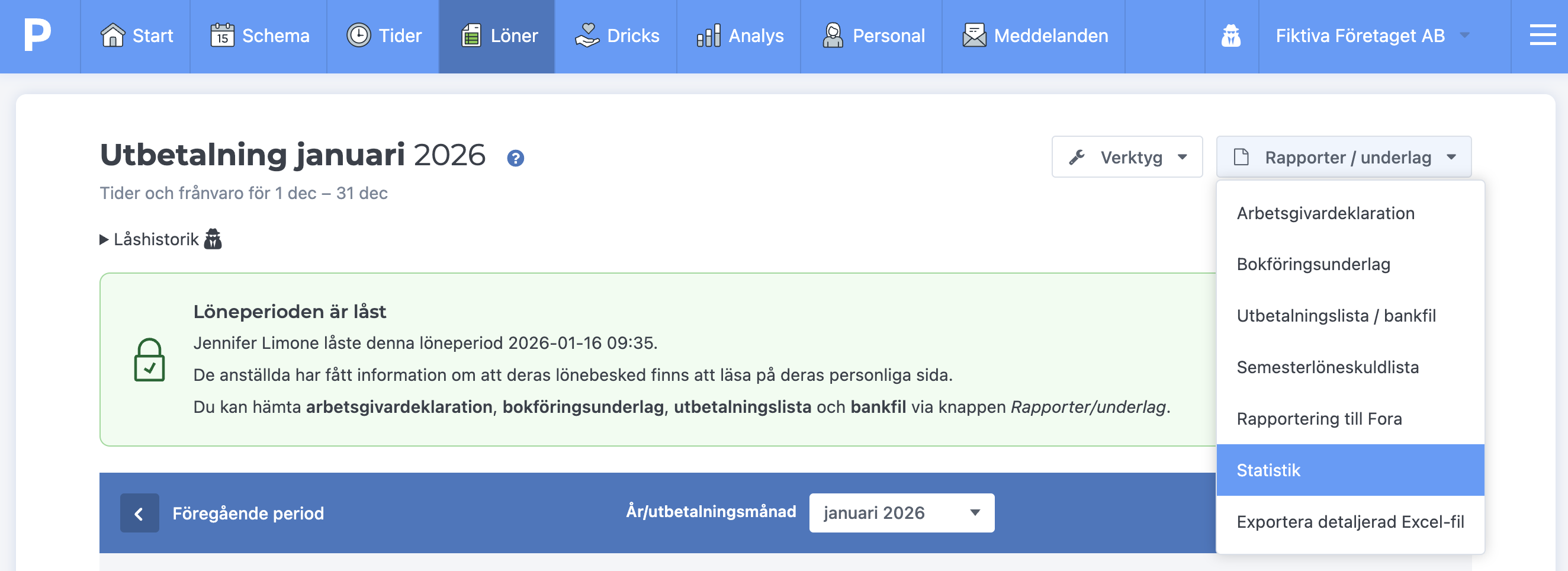 För att hämta KLP-statistik behöver du inte göra några förinställningar på ditt konto. Du hittar filen efter att du har låst en löneperiod via knappen Exporter - Statistik.