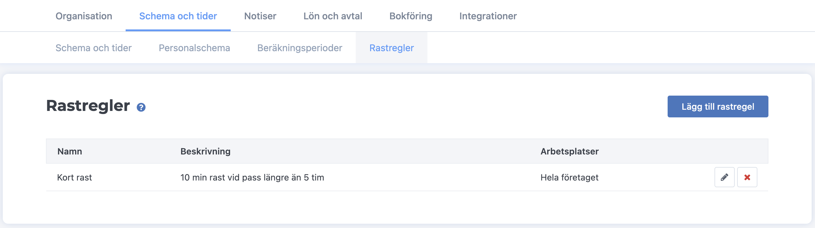 - Du kan välja att lägga in en planerad rast på ett grundpass i schemat