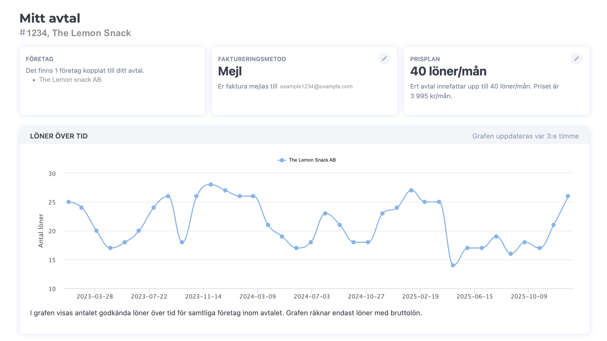 För att se och administrera ert avtal behöver du ha rollen avtalsansvarig. Som avtalsansvarig har du bland annat behörighet att hantera faktureringsuppgifter, prisplaner och se statistik.